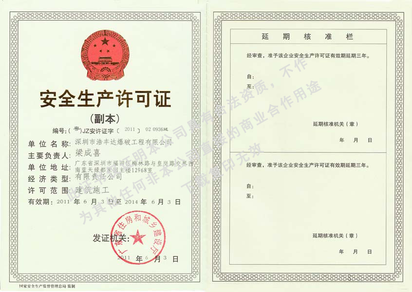 您的位置:首页→公司资质 →安全生成许可证